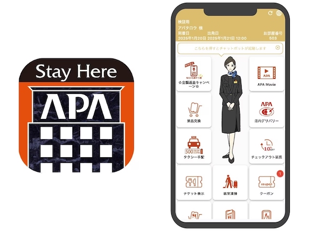 同社は宿泊者向けアプリ「APA Stay Here」を導入し、滞在中の利便性向上を図っている。