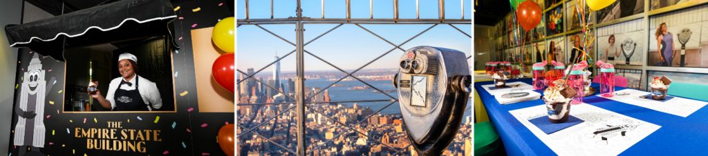 新パッケージには、展望台ギャラリーのガイド付き見学や86階デッキからのニューヨーク市街の眺望、プライベートルームでのパーティー、装飾が含まれる。また、Ghirardelli Chocolate & Ice Cream Shopのアイスクリームサンデー体験のほか、軽食やドリンク、フェイスペインティング、バルーンアート、エンパイア・ステート・ビルディングのオリジナルパーティーグッズも用意される。