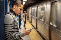 机を使ったデモンストレーションでストレスフリーな指圧を伝授する大橋渉氏。右は体感するジャパン・ソサエティー理事長の櫻井本篤氏=5月24日、マンハッタン(撮影:工藤)